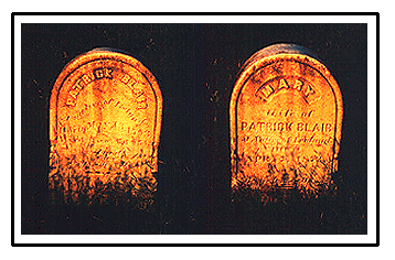in Mt. Blair Cemetery, Woodcock Township, Crawford County, Pennsylvania. The picture was taken at dusk. They read as