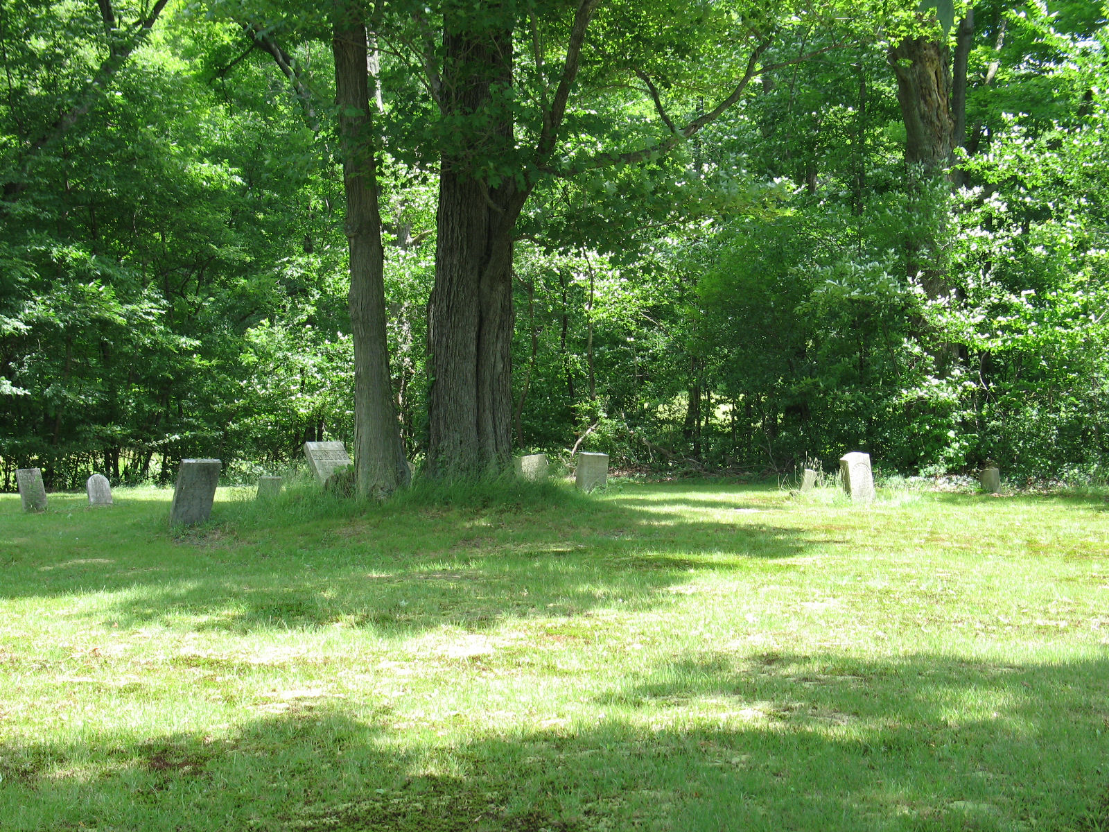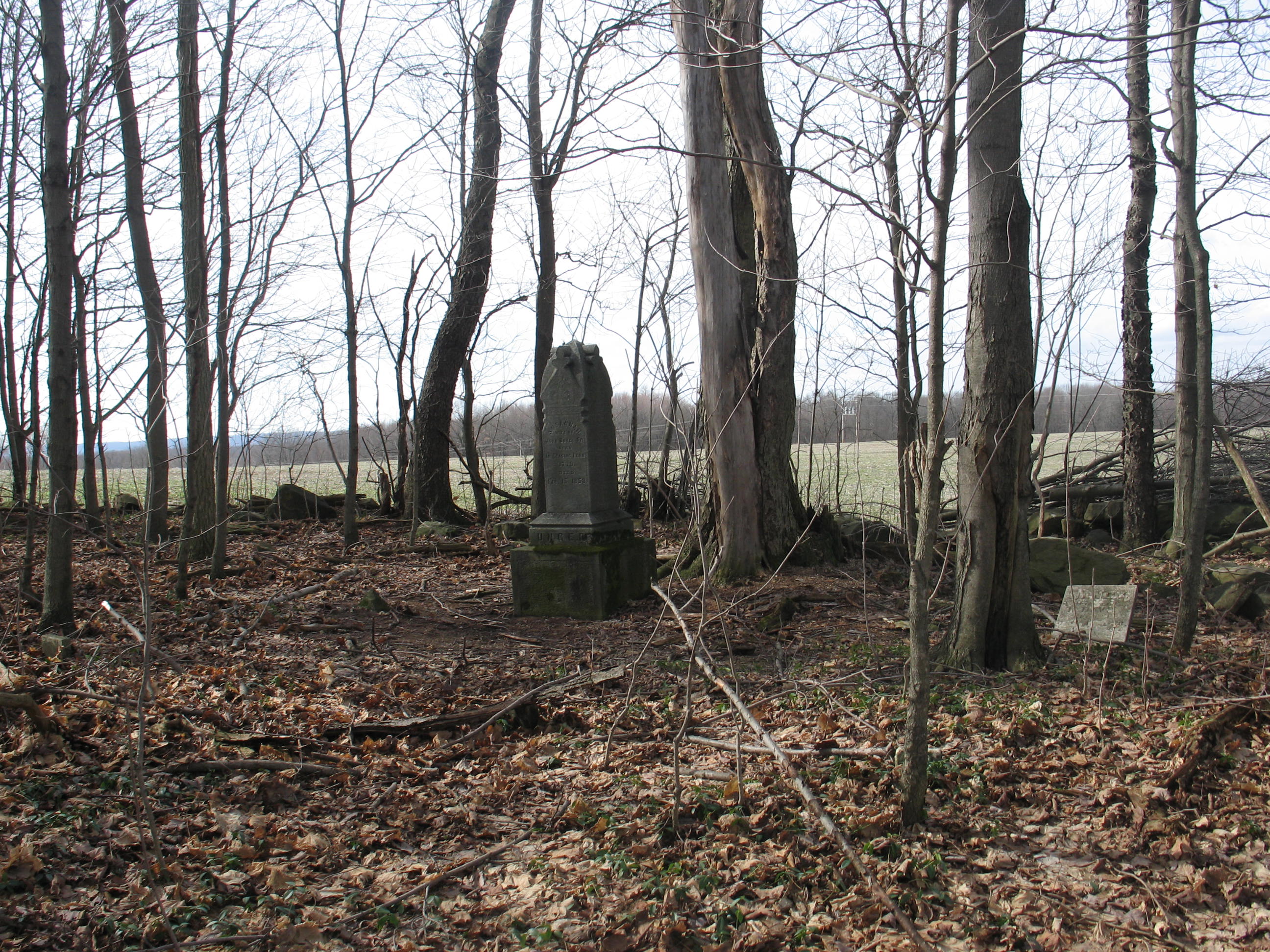 | Wheeler Cemetery Located beside a stream on Township Road 20043 (Linesville Road). The tombstone for Josiah Wheeler was present in a 1940 indexing of the county cemeteries, but was missing in a 1970s indexing of the cemetery. The grave was not moved, the stone just disappeared. |