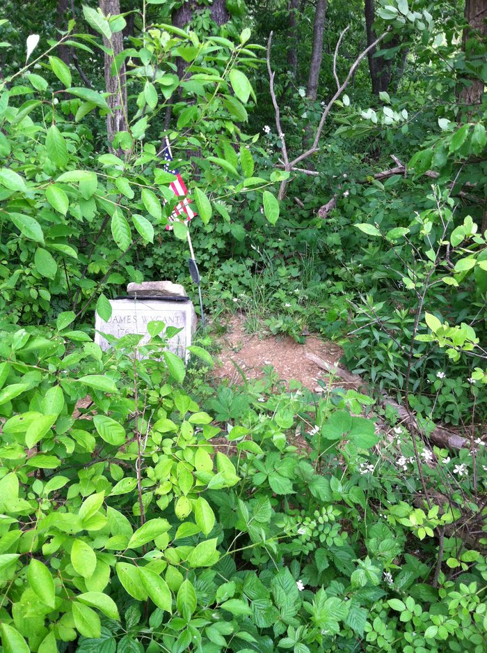 | Wygant Cemetery Go to a location on the east side of the Franklin Pike (PA St. Rt. 2010) approx. 0.4 miles south of its intersection with Byham Rd. where Rt. 2010 crosses a low area and the roadway is protected by guard rails on both sides. Enter a wooded areas on a slightly maintained path about 18 feet north of the north end of the guard rail. Monuments are about 50 feet from the end of the road. |