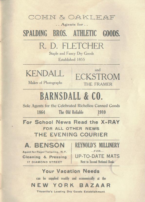 June 1910 X-Ray, Titusville High School